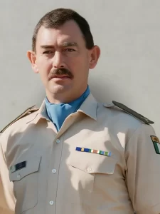 He enlisted in the Defence Forces on 05 December 1979 and he served 21 years in 2 Cav Sqn until his retirement on 04th December 2000. He completed two tours of duty with UNIFIL in 1982 and in 1998.